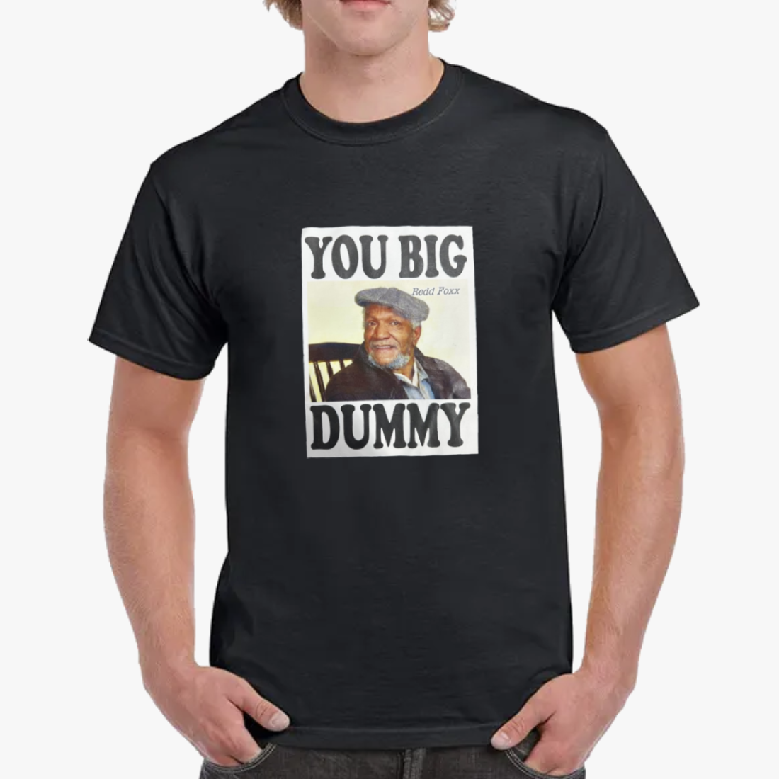 This wholesale "You Big Dummy" T-shirt features a classic design printed on premium black cotton fabric. Available in assorted sizes from medium to 2XL, these tees are perfect for retail stores and e-commerce businesses looking to offer unique graphic tees.